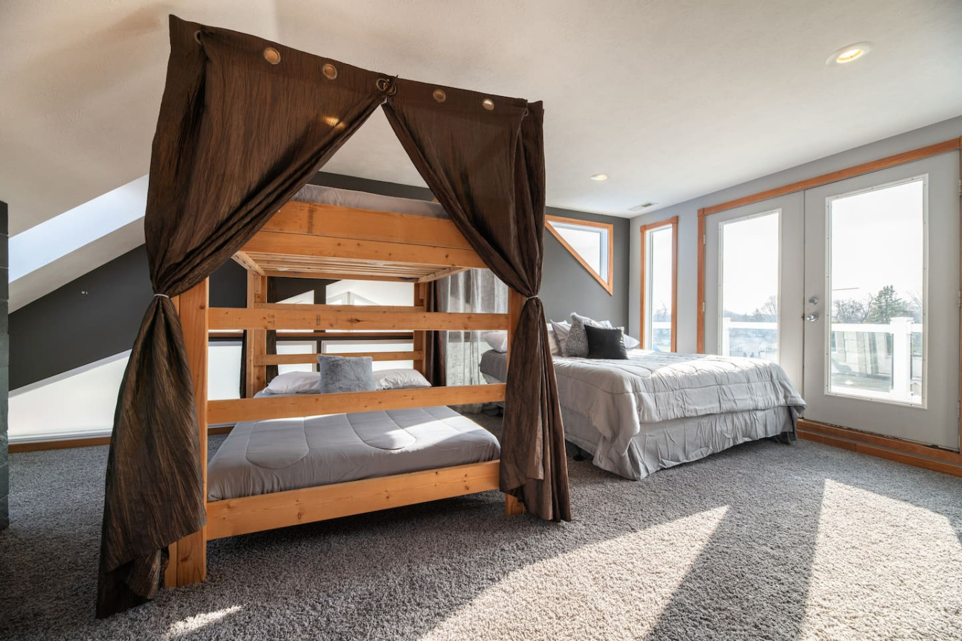 / nightWe have a waiting list we can add you to as our algorithms predict the best scenario and currently... "From May 1st to September 30th, we require a 3 to 6-night stay when booking any weekend night if more than 3 months out and a 2 to 3-night weekend stay if booked less than 2 months away from the dates you want to book. 1 night stays are approved on case by case basis and typically accepted during the week in peak season and 99 percent of the time in off season times. Our rates may require a upcharge for shorter stays than seasonal requirements 10-50 percent and send with special offers agreed prior to booking. See guest services for algorithmic amounts. Waterfront private home Campau Lake with 3 other rentals 4 in a row. The hot tub 3rd level and swim pool and heated swim pool spa will handle 14-16 guests comfortable and is ready year-round private for your group only. Other great options as well jacuzzi and steamer shower. The fun starts with 2 house escape games included while family and friends can enjoy, 3 fireplaces, volleyball, game room fishing, campfire and order up a limo options we have one waiting for your group. Bring a snowmobile. Campau and Kettle Lake this is the 4 story with PRIVATE NOT SHARED hot tub on 3rd level and Jacuzzi tub. steamer shower, game room Tiki bar(s) kayaks, volleyball, fire pit, grills, smoker. The "ENTIRE HOUSE" the 4-level option is NOT shared the lower or upper 3 levels are also not shared they are all private to your group only. Our locations are private to your group, your rental is isolated no access within your rental by others. This house has 2 house escape games, starting under silverware first clue. See shared areas like parking, dumpsters, volleyball court or kayaks, basketball. We have unshared transportation free from uber provided DADDS MAGIC BUS, we have a great place with hot swim pool spa, for your group with great views from any floor and the design allows you to move around with plenty of room for large groups and small groups will feel very comfy you do not share no house areas only the outside volleyball, parking. Your private Tiki bar game room with free kayaks, canoe, rowboat and plenty of fish to catch by the fire pit right by the water and beach volleyball and Pontoon boat rentals. You can have a great time and stay at this place it's great for your private group when renting the full house all levels and other locations on the water. Start with a swim pool spa add on is NOT shared but scheduled and add on a indoor swim pool with tv shower and deck to hang out this is also add on NOT on site and NOT shared but scheduled, rent the pontoon boat delivered to your dock by a 3rd party renter company, try the house escape options and book your time and other experiences, limousines today. Our property have a door ring cam and 2 camera on the driveway and no indoor cameras for your security and are typically only monitored if you have extra guests or visitors to add with our open door policy and to make sure your not parking in the streets. We have no interior cameras. Check in on your own or have our crew show you all the fun options and hidden kids forts they will love it and our house escape games with extra fun for the whole family. Plenty of parking in our lot across the street or driveway not on street please. When you rent all 4 levels you have the only access however if you rent the upper 3 levels see other listings not this listing ... it's totally separate from the lower level is a separate listing also and very private. The best value is all levels so get that reserved for your family today! You may access all parts of this house except the garage, pantry and owner closet for master bedroom. We do not split levels in peak season unless we have a cancel or opening last minute. We will have a check in/out person that will meet you at the property and you will text 1 hour prior and call them prior to arrival. We will send you a group text with check in person, repair person and manager/ owner which be on alert if you have any concerns just text in your questions, concerns or immediate needs in which we can dispatch a person to take care of your requests asap, please reply with check in time and estimated group size. We have a house manual on site, you can access 6 channels available for internet, the check in person will meet you at the property and if you have any questions for pontoon boat rental or car service or limousine service just text into our group is the manager/ owner to get almost instant answers. Pontoon boat also is with another options on the lake and is not our pontoon. We have adjusted the prep clean fee to $20 per person based on actual guests and added guests past 9pm will need to pay for stay at $25 per person and clean prep one time fee $20 per person. Prep check in/out inspection. Contact us we want to keep you happy and love family groups. Campau and Kettle Lake we own the whole cul-de-sac with no neighbors across the street from us and have maintenance persons and cleaners nearby with a school and playground with basketball courts on the corner to our road. We own the house next door and the last 2 houses are owned by family and have rented this location for over 15 years. Get special options with our concierge service and personal uber, limo or party bus service and ticket packages. Make your stay an experience, 15% off Pizza at Mikes Pizza and 15% off dinning at Gipper's bar and free beer tastings at the Campau corner fresh meat market with pizza from Mikes discounted 15% then, plan the fun with add ons during your stay. We have transportation services DADDS MAGIC BUS AND LIMOUSINE with great experience packages, for all ages, bounce for the kids or casino and brewery scavenger hunts for the big kids. Turn in up to 10% of your rental receipts or one nights round trip transfer receipt for transportation for refund on your rental, or upgrade to our limo service $12.50 per person each way or appr