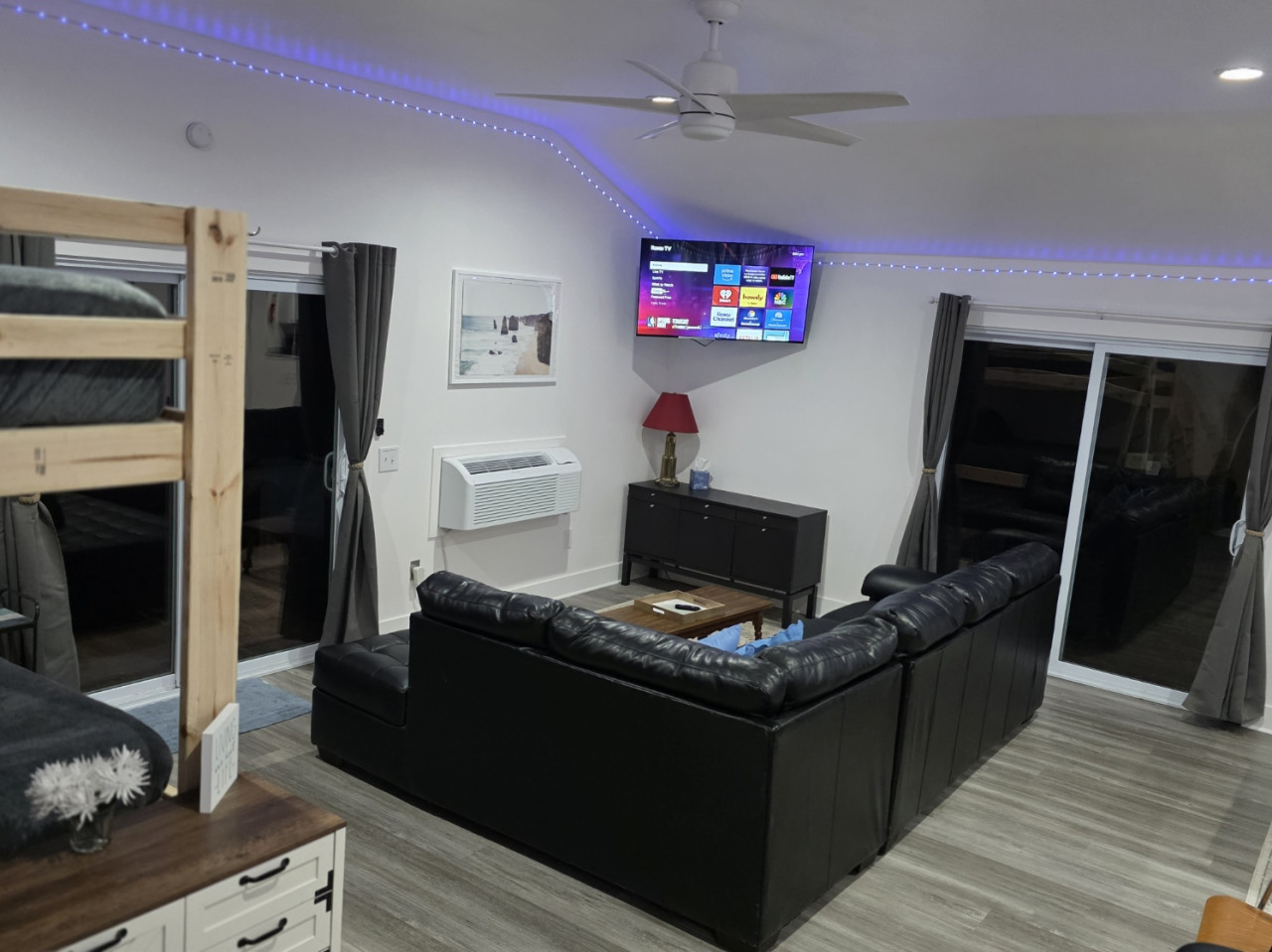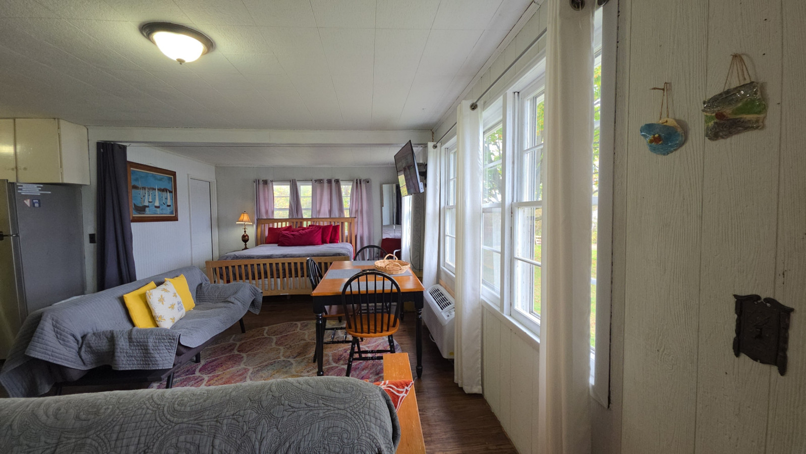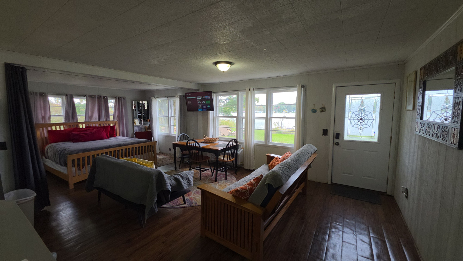 June 2024 5.00Nice location on the lake. A few things needing repair but not enough to effect the trip. This may have just been me but the AC is window units instead of central air which was just my assumptions so some rooms were warmer than others. We also went on a 90+ degree week.