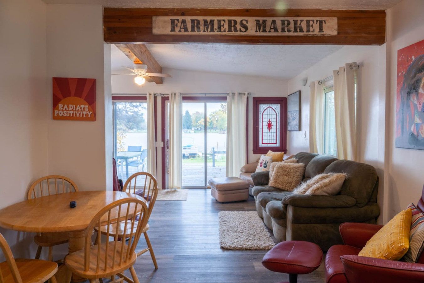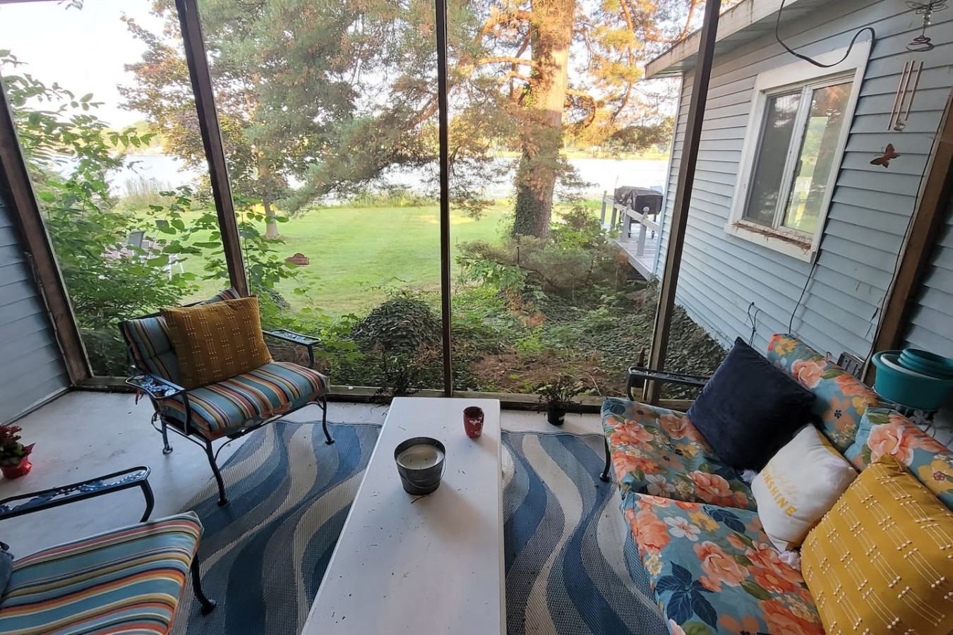 August 2025 3.00Location is great but thats it. The place is in need of repair. Doors to the bathrooms needs locks. Cabinet doors are broken. Furnitures stained and ripped. The deck is a little dangerous with some wood rotting away. The dock/pier has collapsed.