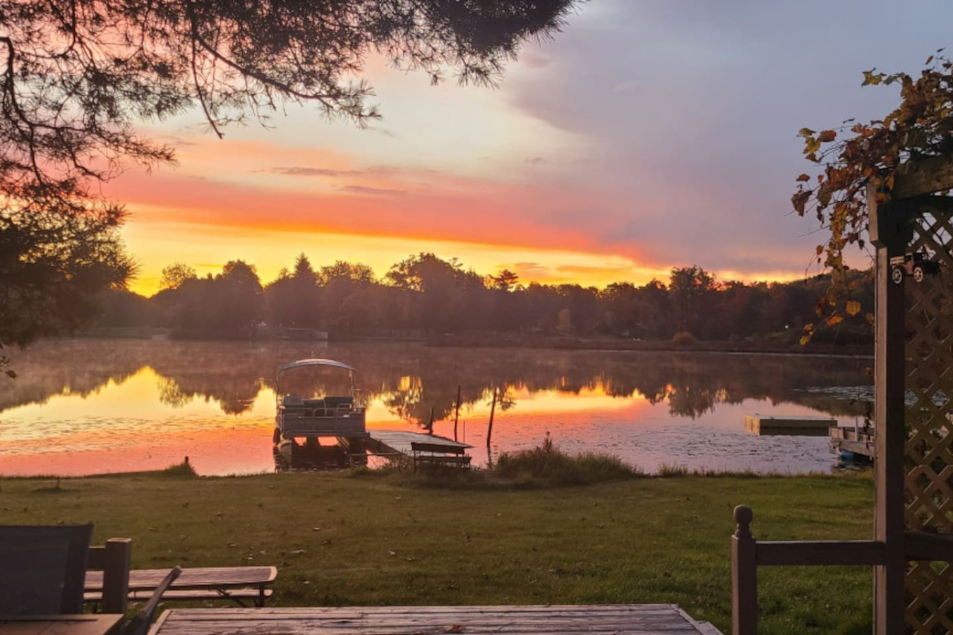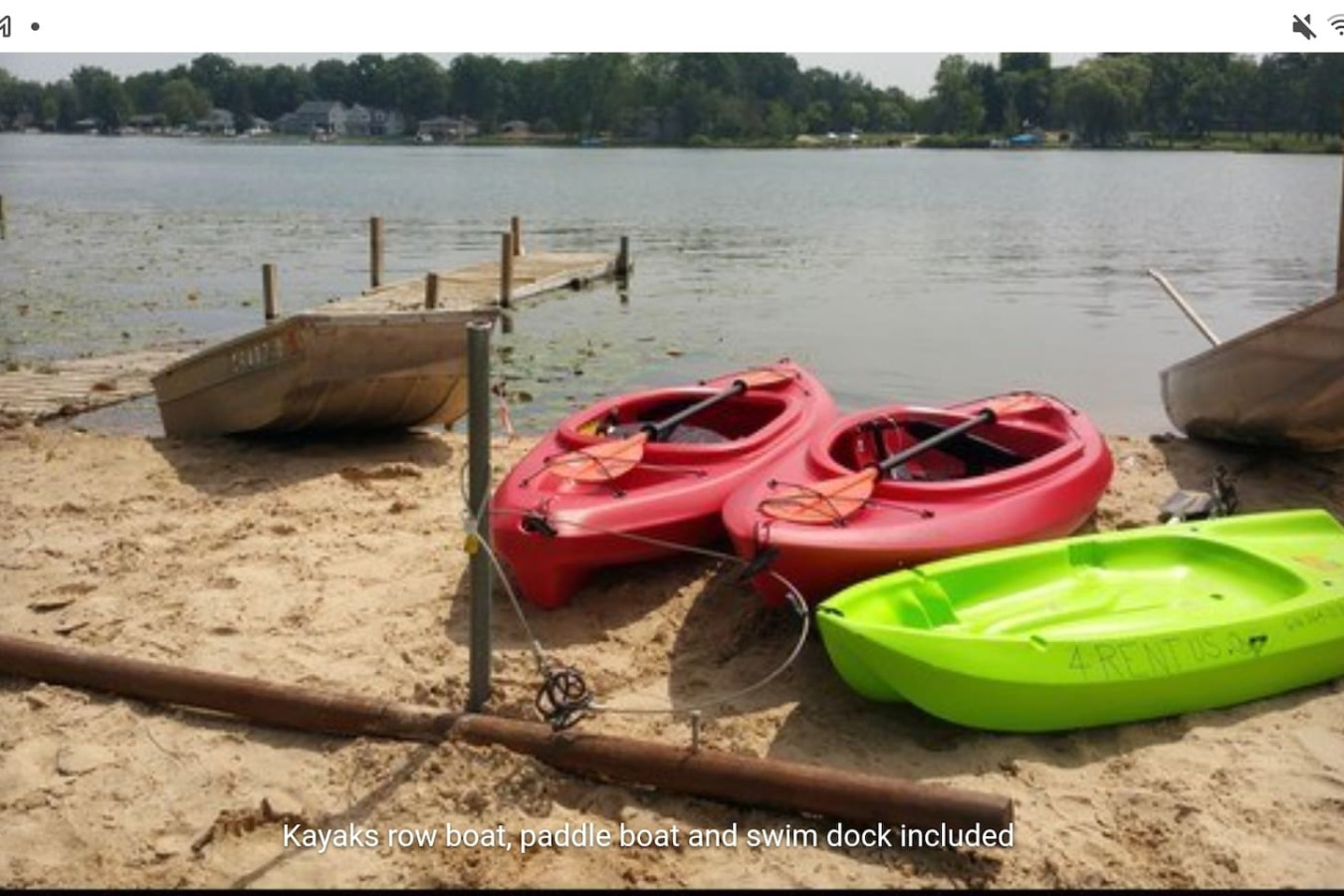 July 2025 4.00Wonderful place for a family gathering! We enjoyed the large yard on the beach with kayaks, a boat and canoe all available. We rented a pontoon boat to tour the lake and made a campfire at night.Help was available on site for any questions or needs we had. The only negative issues were the pool and hot tub were not very clean.